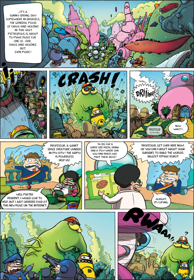 In between, I tell the story of a young comic book artist who tries to get by in the post-apocalyptic world of Brussels and its surroundings.